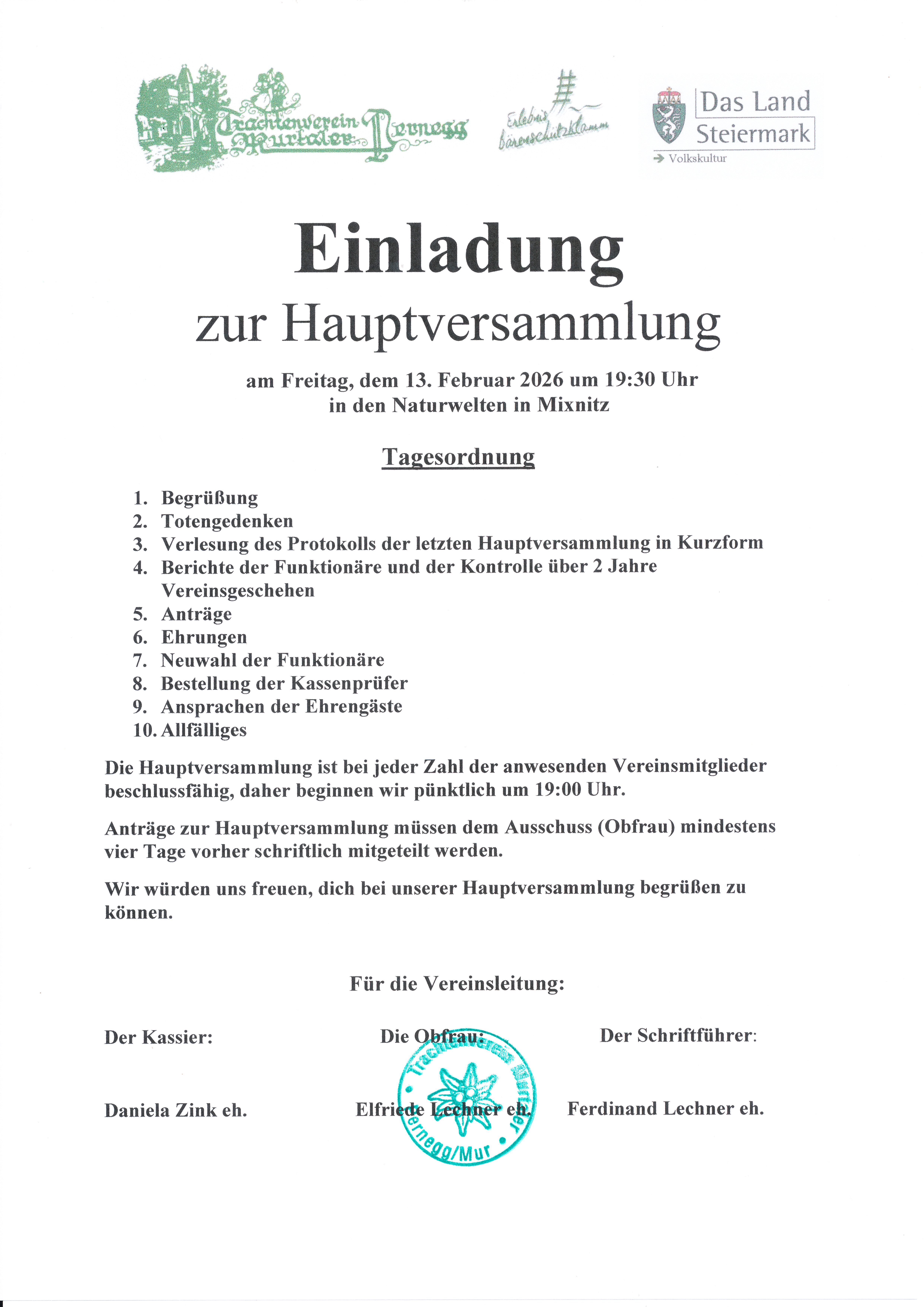 Einladung Hauptversammlung Veröffentlicht am 16. Januar 2026 von Ferdinand Lechner [Zeige eine Slideshow]