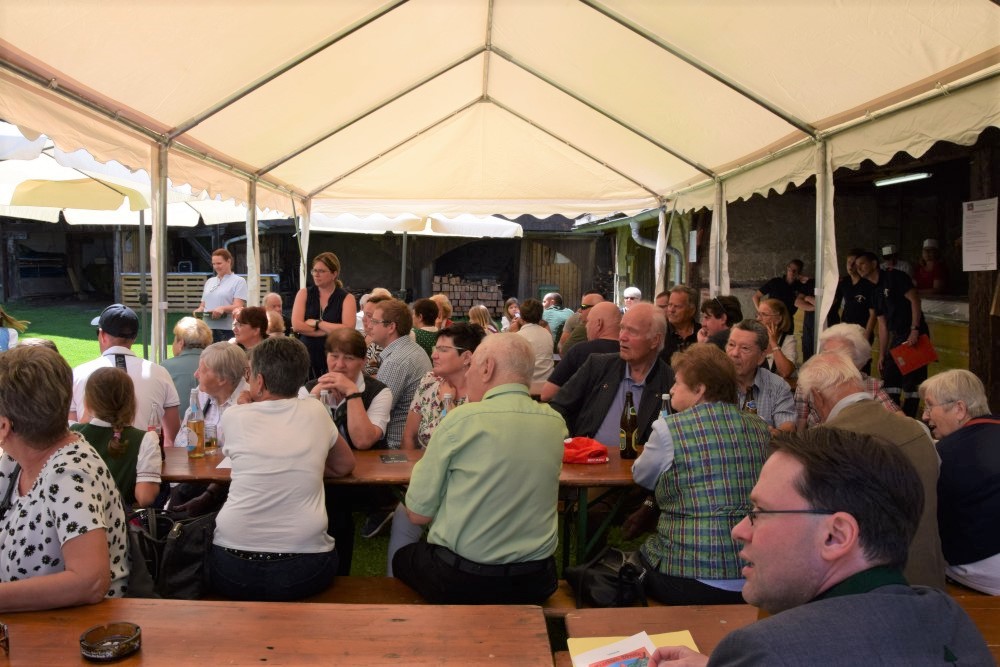 Beim anschließenden Festakt konnte Obfrau Elfriede Lechner viele Ehrengäste begrüßen. Die Vereinsgeschichte, verpackt in einem Gedicht vom Heimatdichter und Ehrenmitglied Sepp Maier, wurde durch seinen Sohn Wolfgang präsentiert.