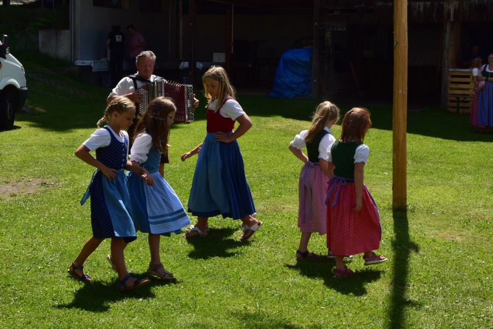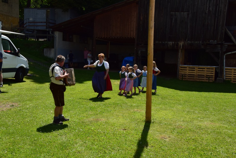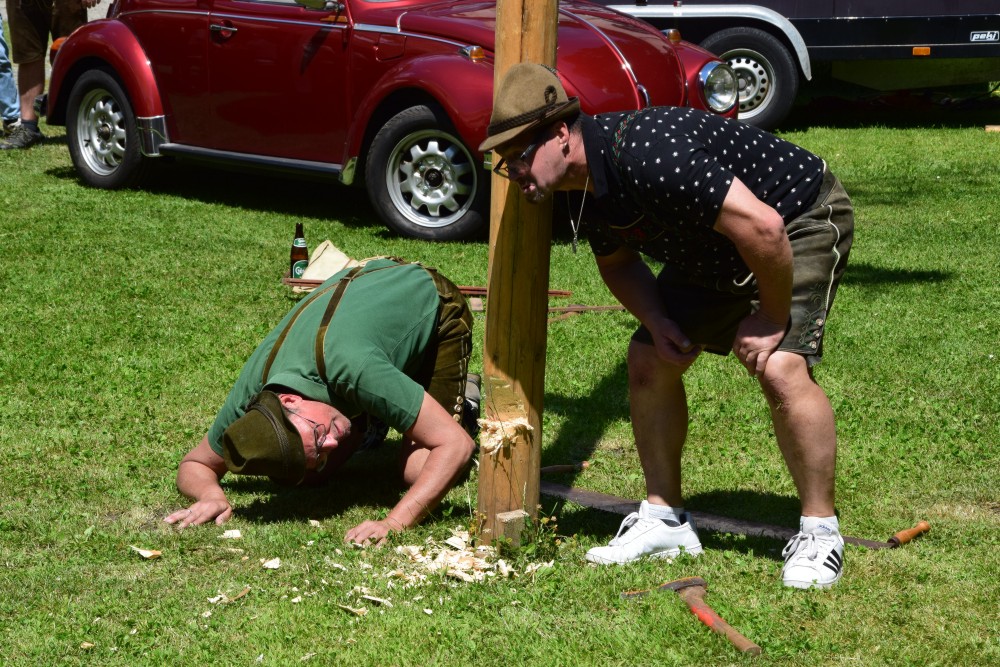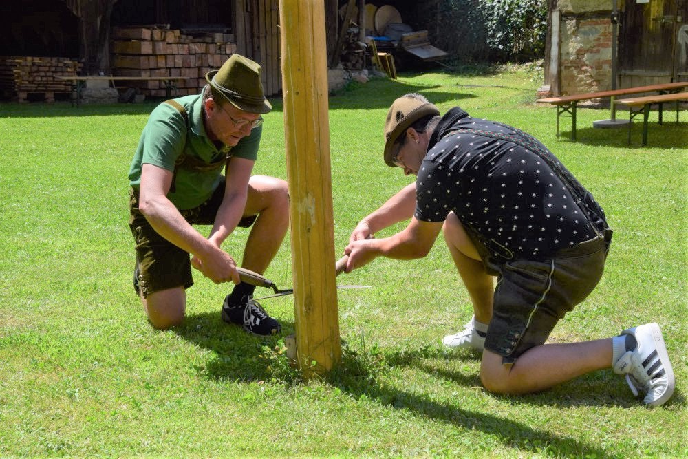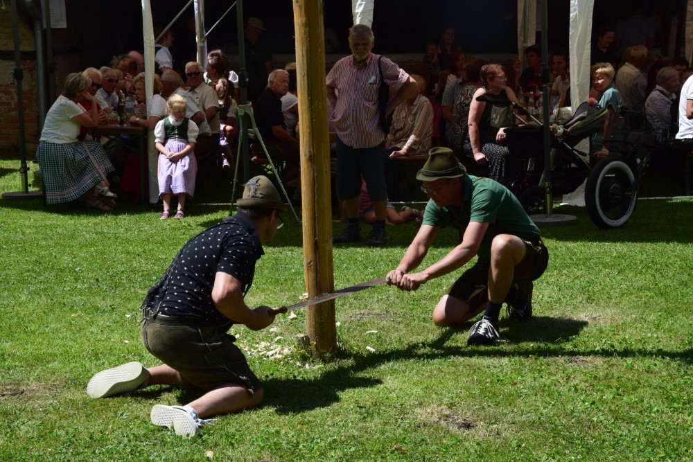 Bei herrlichem Wetter und großartigem Publikum haben wir am 17. Juli unseren Maibaum umgeschnitten. Dominant 7 spielten zum Frühschoppen auf und unsere Kinder tanzten nochmals um den Baum, bevor er von unseren Holzknechten Erich und Peter umgeschnitten wurde.