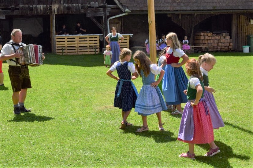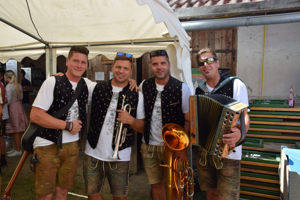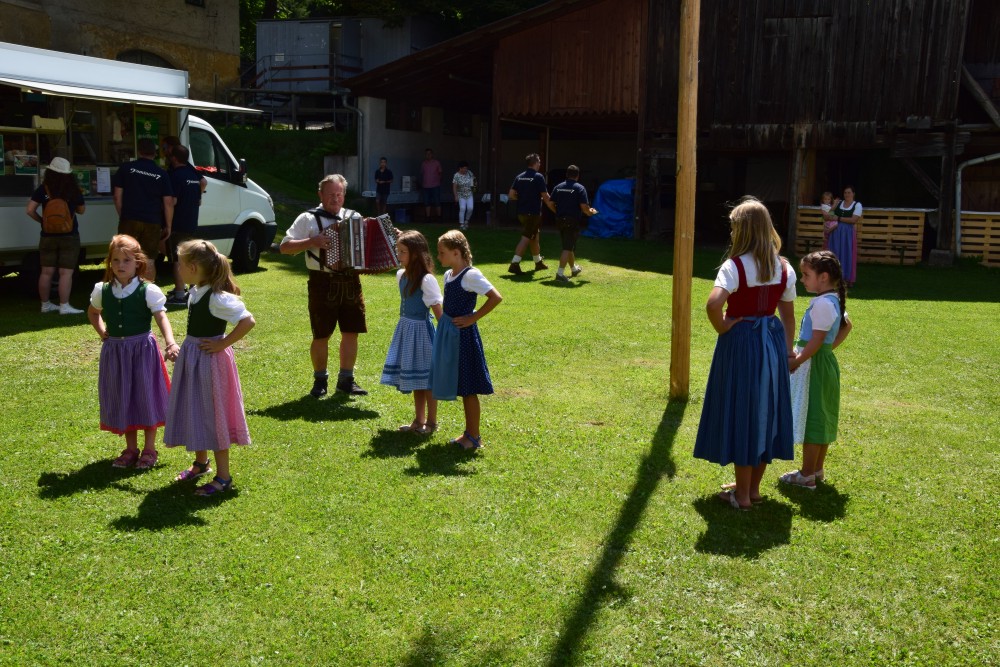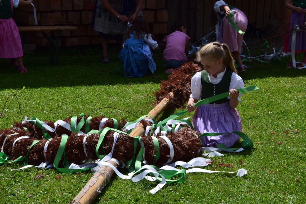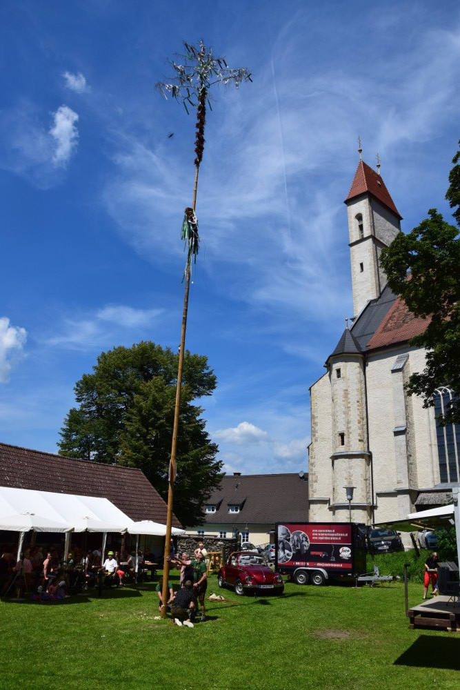 Bei herrlichem Wetter und großartigem Publikum haben wir am 17. Juli unseren Maibaum umgeschnitten. Dominant 7 spielten zum Frühschoppen auf und unsere Kinder tanzten nochmals um den Baum, bevor er von unseren Holzknechten Erich und Peter umgeschnitten wurde.