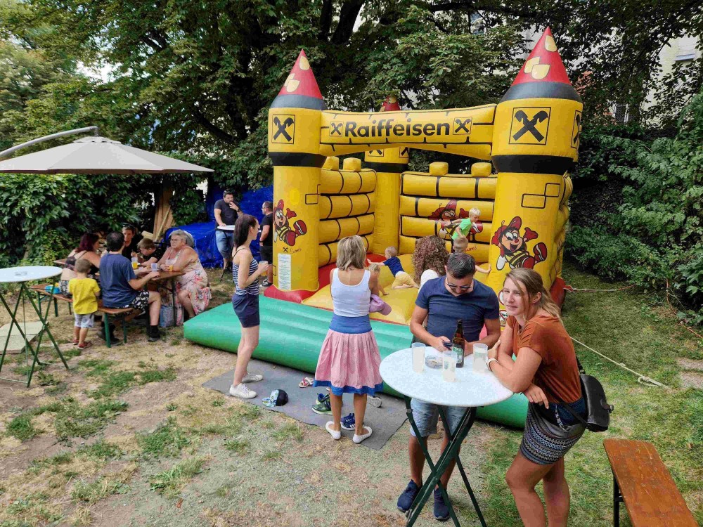 Die „Bauchspeckbradler“ gefolgt von den „Obersteirern“ umrahmten musikalisch und zwar Spitze! Bis zur gesetzlichen Sperrstund ging es heiß her. Die Partylöwen an der Bar wollten gar nicht nach Hause. Für die Kleinen war die Hüpfburg vor Ort. Leckere Schmankerl aus der Küche sowie große Auswahl an Mehlspeisen und kühlen Getränken… was will man mehr?